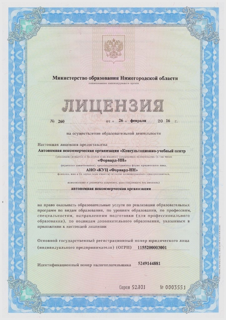 Лицензия Серия 52Л01 «Пин-ап» от 26.02.2016, выданная Министерством образования Алматинской области